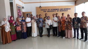 Senada dengan Penyampaian Bu Retno, Dekan FEB UNIB, Dr.M. Armelly memaparkan FEB memiliki tiga jurusan yang di dalamnya terdapat 9 Prodi, terdiri dari 1 Program Vokasi D3 Akuntansi, 3 Program Studi S1, 3 Program Studi Magister, dan 2 Program Studi Doktor. Sembilan Prodi tersebut memiliki 83 orang dosen, “Diantaranya 5 orang Guru Besar (4 orang dari Jurusan Manajemen), dan dari Jurusan manajemen memiliki 16 Lektor Kepala.” Papar bu Armelly.