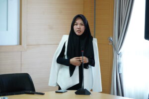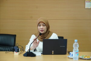 Wakil Dekan Bidang Kemahasiswaan, Alumni, dan Kerjasama, Dr. Rina Suthia Hayu, SE., MM, saat memberi sambutan.